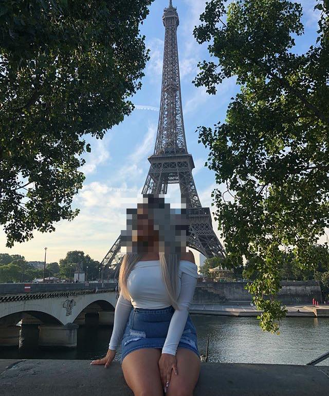 Elle se retrouve assise sur un rebord, glissant sa main gauche sur ses cuisses. Elle nous laisse admirer son corps. Son haut met particulièrement bien en valeur ses gros seins naturels.