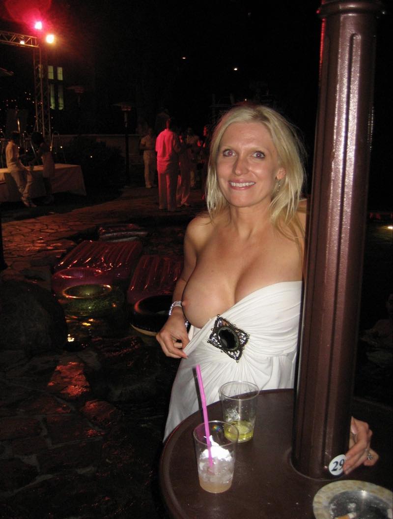 C’est une femme cougar blonde qui est coquine. Elle a un physique relativement attrayant, et elle nous le fait découvrir au grand air.